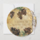 Eine schöne Weihnachtskarte, die an alle Ihre Freunde und Familienmitglieder geschickt werden kann, beinhaltet eine runde Karte mit braunem Texturhintergrund, Kiefernfüße, Baumzweige und anpassbarem Text, der auf der Vorderseite ein fröhliches Weihnachten, den gleichen strukturierten braunen Hintergrund, Kiefernfüße, Äste und Birke mit einem anpassbaren Bereich zum Hinzufügen Ihres Familiennamen, Vornamen und aktuellen Jahr auf der Rückseite.