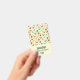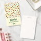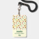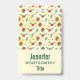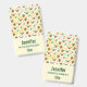 Ein Name mit einem niedlichen Weihnachtsmuster mit Kiefernfüßen und Heiligen auf einem gelben Aquarellhintergrund mit kleinen weißen Kreise verstreut.