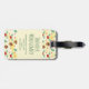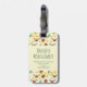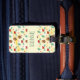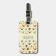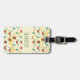 Ein Gepäckanhänger mit niedlichem Muster mit Kiefernzapfen und einem Hengst auf gelbem Untergrund mit kleinen, weißen Kreise, die verstreut sind.
