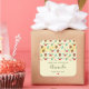 Küchenaufkleber mit einem niedlichen Muster mit Kiefernzapfen und Hole auf gelbem Aquarellboden mit kleinen weißen Kreise, die rund verteilt sind.