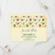 Save the Date Karte mit einem niedlichen Muster mit Kiefernfüßen und heilig auf einem gelben Aquarellhintergrund mit kleinen, weißen Kreise, die verstreut sind.
