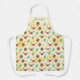 Schürze mit einem niedlichen Weihnachtsmuster mit Kiefernfüßen und Heiligen auf einem gelben Aquarell mit kleinen weißen Kreise verstreut.