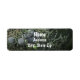 Der Hintergrund dieses Adressetiketts ist ein Foto von Pinienbeeren. Diese runden Beeren sind eine schöne blaugraue Farbe, die in Haufen entlang der grünen Kiefernäste wächst. Der Hintergrund ist dunkel und rustikal, sodass Ihr Name und Ihre Adresse in weißem Schriftart auffallen.