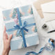 Pine Tree Snowflakes | Blauer Orangenkorallendekor Geschenkpapier