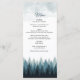 Ein blaues Kiefernwald mit Aquarellfarben. Dieses rustikale Winterdesign besticht durch verschiedene Blautöne und Aquarellakzente. Eine elegante abstrakte Illustration von Kiefern im Winter. Dieses Walddesign schafft ein elegantes rustikales Outdoor-Gefühl. Rustikales Hochzeitsmenü mit modernen Elementen. Auch die passenden Hochzeitseinladungen und andere Schreibwaren sind verfügbar.