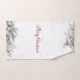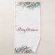 Kiefernäste und rote Beeren auf weißem Hintergrund.