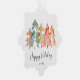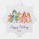 Einfache und elegante Weihnachts-Grußkarte für Ihr Unternehmen, die Ihre Kunden und Kunden als Papierbaumschmuck verwenden können. Die Vorderseite ist mit einer Aquarellfarbe abstrakt von Pinienbäumen in gedämpftem Salbei, Rot, Gold und Orange und "Happy Holidays" in einem stilvollen Drehbuch. Auf der Rückseite, laden Sie Ihr Logo, personalisieren Sie Ihren Gruß und fügen Sie Ihren Firmennamen in moderne Typografie.