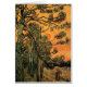 Pine Trees against a Red Sky with Setting Sun by Vincent van Gogh ist eine Vintage Kunst Post-Impressionismus Landschaft Natur Malerei. Ein Kiefernwald mit leuchtend rotem und orangefarbenem Himmel bei Sonnenuntergang. Die Sonne scheint durch die immergrünen Zweige, Kiefernzapfen und Nadeln in der Wildnis. Über den Künstler: Vincent Willem van Gogh (1853-1890) war einer der berühmtesten postimpressionistischen Maler seiner Zeit. Seine Arbeit war besonders für seine raue Schönheit, seine emotionale Ehrlichkeit und seine kühne Farbe bemerkenswert.