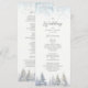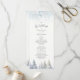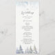 Begleiten Sie Ihre Gäste durch Ihre Zeremonie mit diesem eleganten Winterhochzeitsprogramm. Dieses Design mit sanften Aquarellkiefern, zarten Schneeflocken und einer sauberen Anordnung verleiht Ihrem Fest den rustikalen Charme und die saisonale Ruhe. Ideal für Hochzeiten in den Bergen, im Wald oder im Dezember.