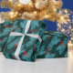 Stilvolles grünes Weihnachtspapier bedruckt mit einem einfachen klassischen Muster von grünen Kiefernzweigen und roten Beeren. Ideal für elegante Geschenkverpackungen. Ideal für einen traditionellen Winter, Wald und rustikalen Stil.