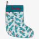 Eleganter, weißer Strumpf mit einem einzigartigen Muster von Aquarellkiefern und niedlichen roten Beeren. Sie können es mit dem Namen Ihres Liebsten anpassen. Perfektes Weihnachtszubehör für ein gemütliches Haus, das in einem Vintagen oder rustikalen Stil mit traditionellem Waldmotiv dekoriert ist.