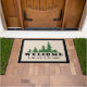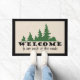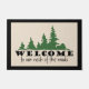Außentür mit Pinienbäumen und Willkommen im Neck des Waldes