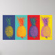 Pineapple Pop Art Poster - Presenting a colorful poster of a row of pineapples. Remind yourself of your love for all things tropical. Presented in pop art style and colors : indigo blue, jade,purple, green red and yellow. This modern pineapple wall art piece will give a dash of color to your home décor or outdoor entertaining area. Also a really wonderful gift option for anyone who likes to stay sunny all year around.