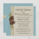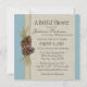Pinecones und das Aussehen des Einbruchs über einem weichen hellblauen auf dieser hübschen Brautdusche oder der Dusche eines Paares. Ändern Sie den Text für jeden Anlass. Diese Einladung ist komplett gedruckt. Es ist kein richtiger Einbruch oder keine Pincones angebracht.