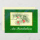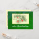 Vintage Darstellung eines Kiefernstraums in Grün mit roten Kiefernkegel in einem goldenen Rahmen auf einem waldgrünen Hintergrund mit einem blauen und grünen Kiefernmuster. Benutzen Sie diese Vorlage, um Ihre persönlichen Einladungen für Ihre festlichen Ansammlungen zu erstellen.