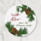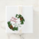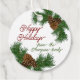 Klassischer "Happy Holidays" Grußwunsch auf rustikal grünen Pineconadeln Zweige Kränze auf einem knackigen, weißen Hintergrund. Mit der Möglichkeit, Ihren Familiennamen und (begrenzten) Text Ihrer Wahl anzupassen oder zu personalisieren.