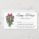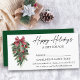 Moderne Elegante Kalligraphie Tinte Aquarell Pines Winter Greenery mit Burgundy Red Ribbon Bow Weihnachtsschmuck, Pine Cones und Holly Berries Happy Holidays Geschenkzertifikat mit Envelope. Green
