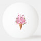 Süßer Waffelkonus mit frischen, rosafarbenen japanischen Kirschblüten auf weißem Hintergrund mit blauen Wasserfarben. Rosa japanische Kirsche.