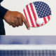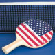 Ping Pong Paddle mit einem patriotischen Flag Print in den USA. Passen Sie dieses Objekt an oder kaufen Sie, wie es ist.