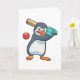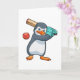 Pinguin auf Cricket mit Cricket-Fledermaus Karte