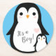 Feiern Sie die neuen Eltern und das Baby mit diesem niedlichen Pinguin Baby Duschdesign! Der weiche blaue Hintergrund und der niedliche Pinguinvogel aus Cartoon machen ihn zu einem perfekten Design für einen kleinen Jungen auf dem Weg, besonders für eine Winterdusche!