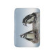 Diese Badmatte kennzeichnet die entzückenden afrikanischen Penguins, die auf einer felsigen Leiste gegen einen Himmelblauhintergrund stehend sind. Pinguine sind Wasser-, flightless Vögel, deren Flügel gewordene Flipper haben. Jedes hat einen schwarzen Streifen und schwarze Flecken auf dem Kasten. Das Muster der Stellen ist für jeden Vogel, gerade wie menschliche Fingerabdrücke einzigartig. Sie haben rosa Drüsen über ihren Augen und die rosa und schwarzen Füße.