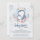 Babydusche per Post Einladung. Kann man nicht mit einer Mutter feiern, um oder Eltern zu sein? Duschen Sie sie mit Liebe und Geschenke, um die Ankunft ihres Babys vorzubereiten. Die Einladung enthält Pinguin Mama und Baby auf einem blauen Hintergrund und Imitate Glitzer Sprinklen. Personalisieren Sie Ihre Registrierungsdaten und Ihre Postanschrift.