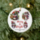 Dieser bezaubernde, personalisierte Weihnachtsschmuck enthält vier festliche Pinguine, die in gemütlicher Urlaubskleidung gekleidet sind und jeweils fröhliche saisonale Akzente tragen. Umgeben von Grün, Geschenken und Urlaubsszauber bringen die Pinguine Freude und Wärme in Ihren Baum. Das Design beinhaltet die Worte "Merry & Bright" in fett roter Schrift, zusammen mit Familiennamen und Jahresanpassungen, und macht es zu einem perfekten Sake für die Ferienzeit. Eine wunderbare Geschenkidee für Familien, Freunde oder Lieben, die Jahr für Jahr gepflegt werden.