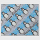 Pinguine Geschenkpapier für Kinder Geburtstage! Niedlicher Pinguin im Schnee mit blauen Vögeln, die um ihn fliegen.