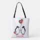 Personalisierte Pinguin-Paar-Tasche. Die perfekte Art, ein paar zu gratulieren, die gerade verheiratet got haben! Es enthält Platz für eine Nachricht und den Namen des Ehemanns und der Ehefrau, sowie das Jahr ihrer Ehe. In diesem niedlichen und illustrierten Design sind auch passende Karten erhältlich.