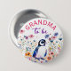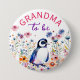 Ein niedlicher Pinguin umgeben von rosa, blau, orange und lila Blumen Aquarellmalerei Mädchen Babydusche personalisiert Oma auf Knopfdruck.