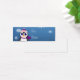 Ein bezaubernder Cartoon-Pinguin mit lila Schal und einem lila und rosa Strick auf blauem Hintergrund mit Schneeflocken