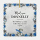Niedliche, monogrammatikalische Weihnachtsschmuck mit ausgewaschtem grauem Hintergrund, elegante Aquarellblumen & Blätter, bezaubernde Pinguine, Schneemann, Geschenke, die Kinder zuerst, Name, Jahr, Sprichwort "meine ersten Weihnachten", und die Statistiken des Kindes.