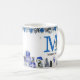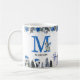 Niedliche blaue Weihnachtsfeier mit eleganten Aquarellbildern, bezaubernden Pinguinen, Schneemann, Geschenken, Ihren Initial und Namen.