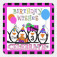 Pinguin-Party-Geburtstagsticker mit vier Pinguinen, Ballons, Geburtstagsballons, hellen Farben und einem Bereich, den Sie Ihrem Kind das Alter hinzufügen können!