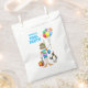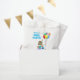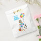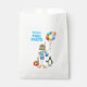 Taschen für die Gäste zum Party im Sommer. Es ist für Kinder geeignet und hat eine lustige Illustration mit einem Mädchen und Pinguin, die für das Party bereit sind.
