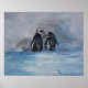 Von einer originellen Ölmalerei von Brenda Thour aus zwei niedlichen kleinen Pinguinen, die sich in einer blauen Winterlandschaft zusammenpflegen. Referenz Foto von Jessica Thour. Copyright by Brenda Thour 2012.