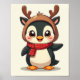 Ein Vintager niedlicher Cartoon spielte kleine Babypesto Pesto Pinguin mit Rentierkostüm, Kawaii. Große Anime-Augen. Der Hintergrund ist weiß.