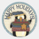 Ein niedlicher Pinguin mit Hut und Schal mit der Beschriftung Happy Holidays auf Knöpfen, Magneten, Schlüsselanhängern, Aufklebern, Halsbändern und US-Porto-Briefmarke. Macht ein großartiges Gastgeschenk, kleine Geschenk oder Umschlag Aufkleber für Weihnachtskarten.