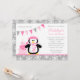 Pinguin Snowflakes Pink Winter Onederland Geburtst Einladung