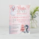Niedlicher Aquarellpinguin in einer Weihnachtsmannmütze und Schneemann mit Schneefall rund um "Winter ONEderland 1st Birthday Party". Das Design ist in rosa, grau, duskyblau, schwarz und weiß. Personalisieren Sie sich einfach mit dem Namen Ihres Kindes und den Angaben zur Geburtstagsfeier. Die Rückseite weist einen silberfarbenen Hintergrund für den Glitzer von Imitaten auf. Gegenüber von Holiday Hearts Designs.