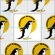 Eine niedliche Schwarz-Weiß-Illustration eines Pinguins aus Chinstrap vor der gelben Sonne. Ein Design für Pinguinliebhaber. Diese Vögel sind in den Pazifik- und Antarktischen Ozeanen zu finden.