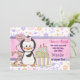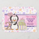 Sweet Penguin Baby hat lustigen Ballon, Kuchen, Haarbogen und Text Art Nummer zwei. Hintergrund sind pastellfarbene Blume und Kuchen. All dieser Text ist für Sie bereit, um mit Ihren Informationen anpassen. Passende Taste, Hemden und andere Geschenkartikel in meinem Geschäft.
