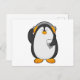 Pinguin und Mobiltelefon mit Headset Postkarte