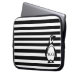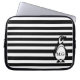 Pinguin auf Schwarzweiss-stripey Hintergrund mit optionaler Personifizierung. Laptophülse in 3 verschiedenen Größen.