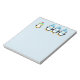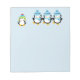 Niedliches Urlaubsnotipad mit Pinguinen, die Hüte und Schals tragen.