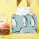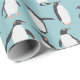 Pinguine - Sammlung von illustrierten Pinguinen mit Färbung von Kaiser und Königspinguinen. In verschiedenen Posen und Positionen angeordnet. Set auf einem halb gebackenen blauen Hintergrund.