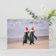Pinguine in Weihnachtsmannmützen am Strand Feiertagskarte