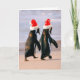 Pinguine in Weihnachtsmannmützen am Strand Feiertagskarte