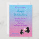 Einladung zum Geburtstag mit Pinguinen und Eis auf rosa und blauen Sternen
